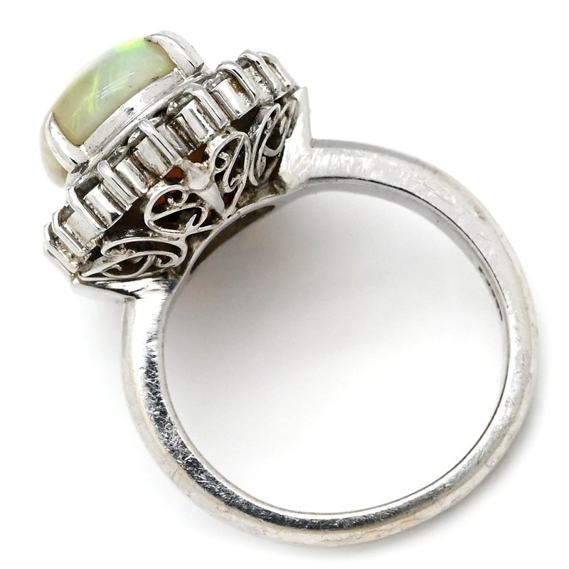リング 指輪 オパール ダイヤリング プラチナシルバー 白 ホワイト 5.5号 【中古】