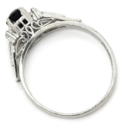 リング 指輪 ブルーサファイア ダイヤリング プラチナシルバー 青 立爪 14号 【中古】