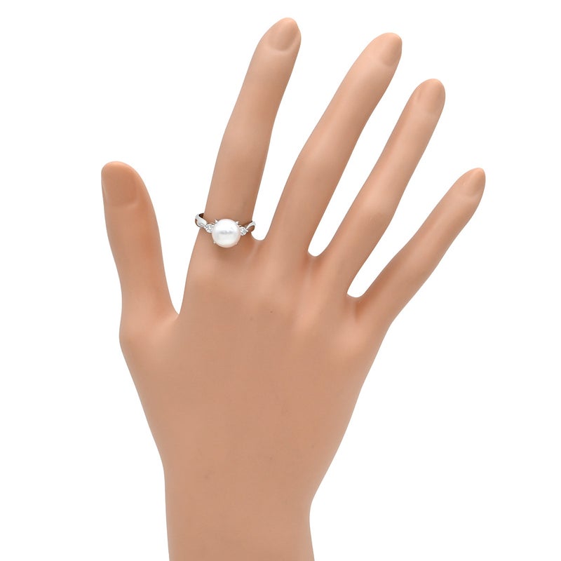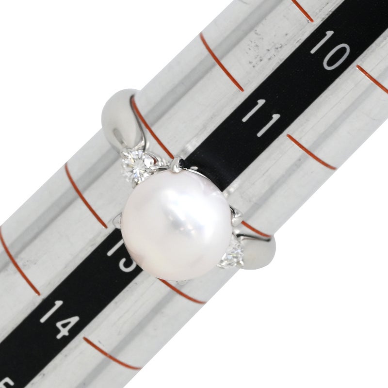 リング 指輪 ホワイト×プラチナシルバー プラチナム 1P 1粒 パール 真珠 あこや アコヤ ダイヤ 12号 【中古】