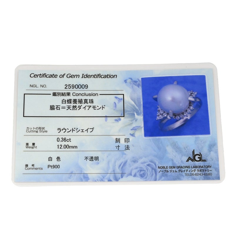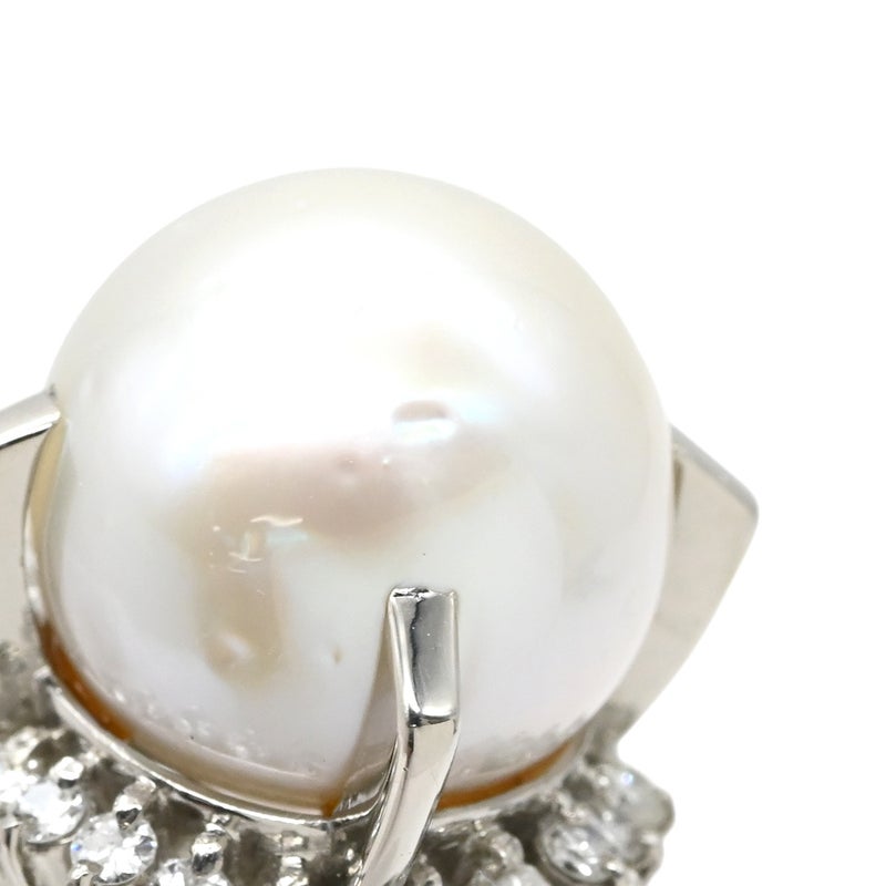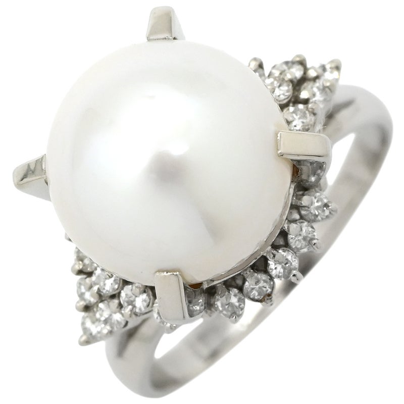 リング 指輪 ホワイト×プラチナシルバー プラチナム 1P 1粒 パール 真珠 白蝶 ダイヤ 17号 【中古】