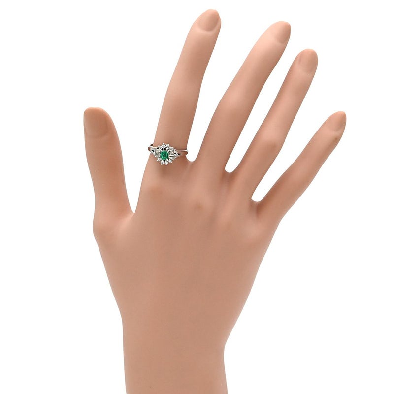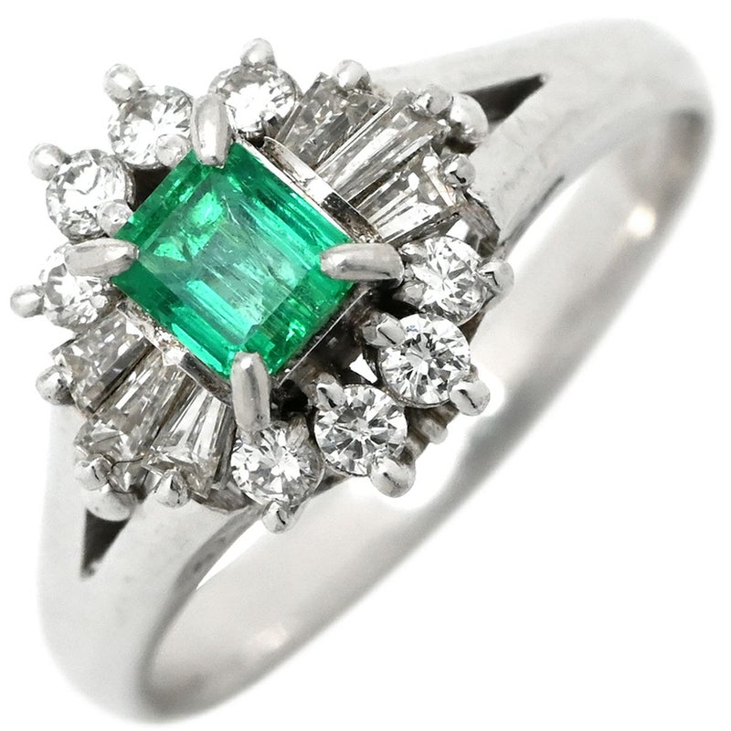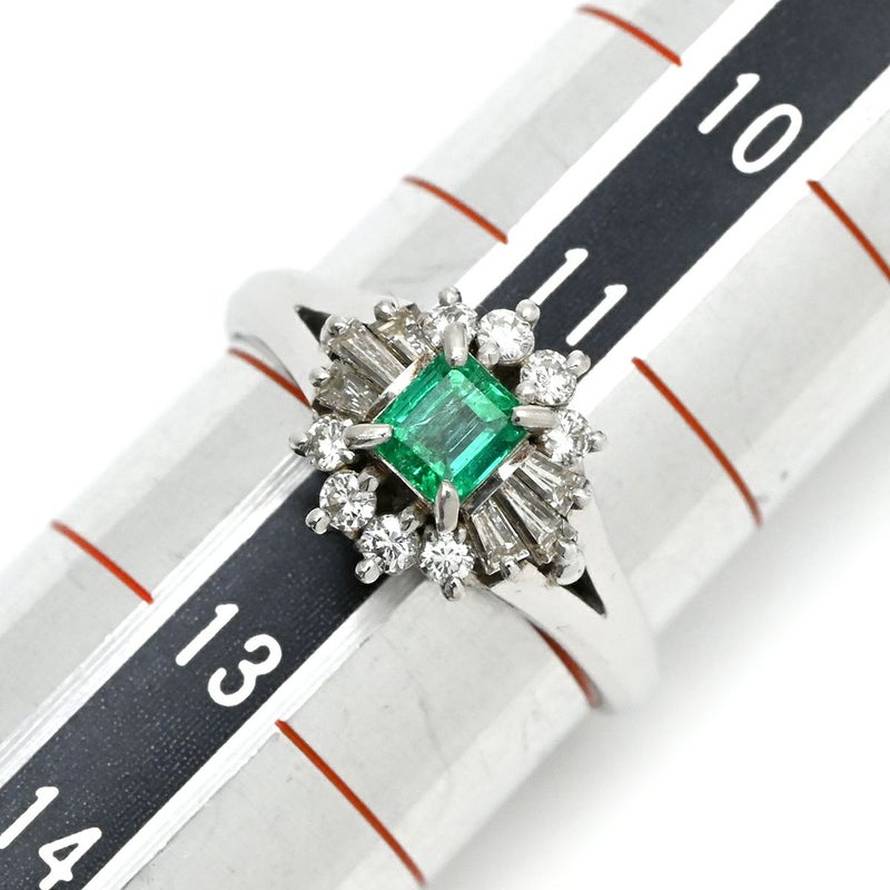 リング 指輪 エメラルド ダイヤモンド リング プラチナシルバー グリーン 緑 スクエア 12号 【中古】
