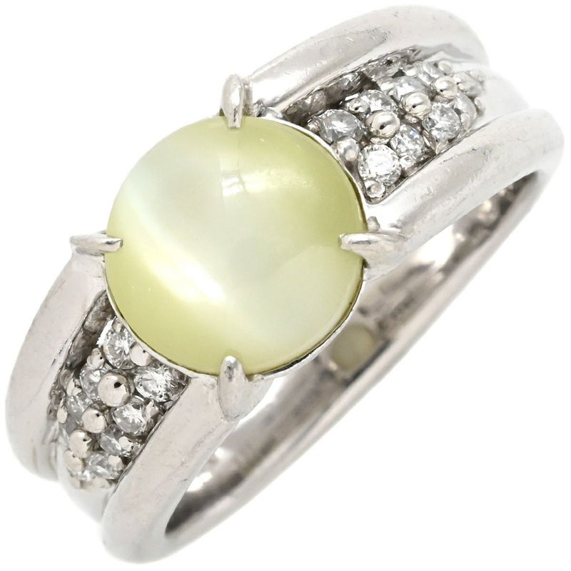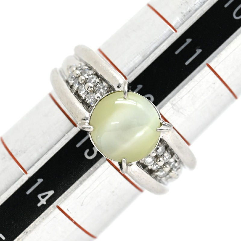 リング 指輪 キャッツアイ ダイヤリング プラチナシルバー 猫目石 シャトヤンシー 12.5号 【中古】