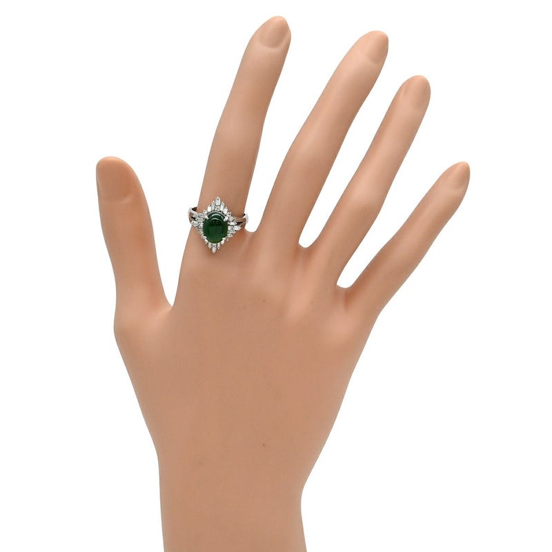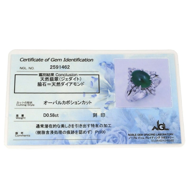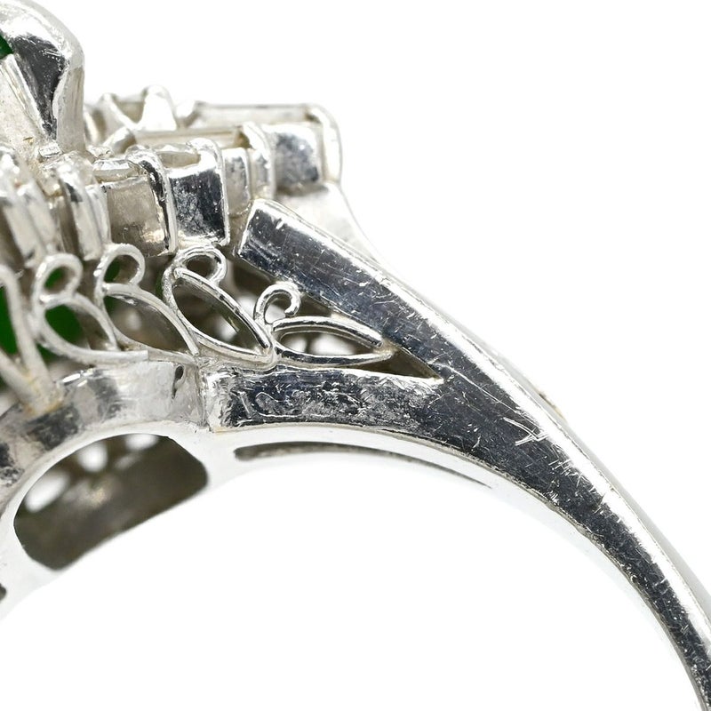 リング 指輪 ヒスイ ダイヤリング プラチナシルバー 翡翠 グリーン カボションカット 13.5号 【中古】