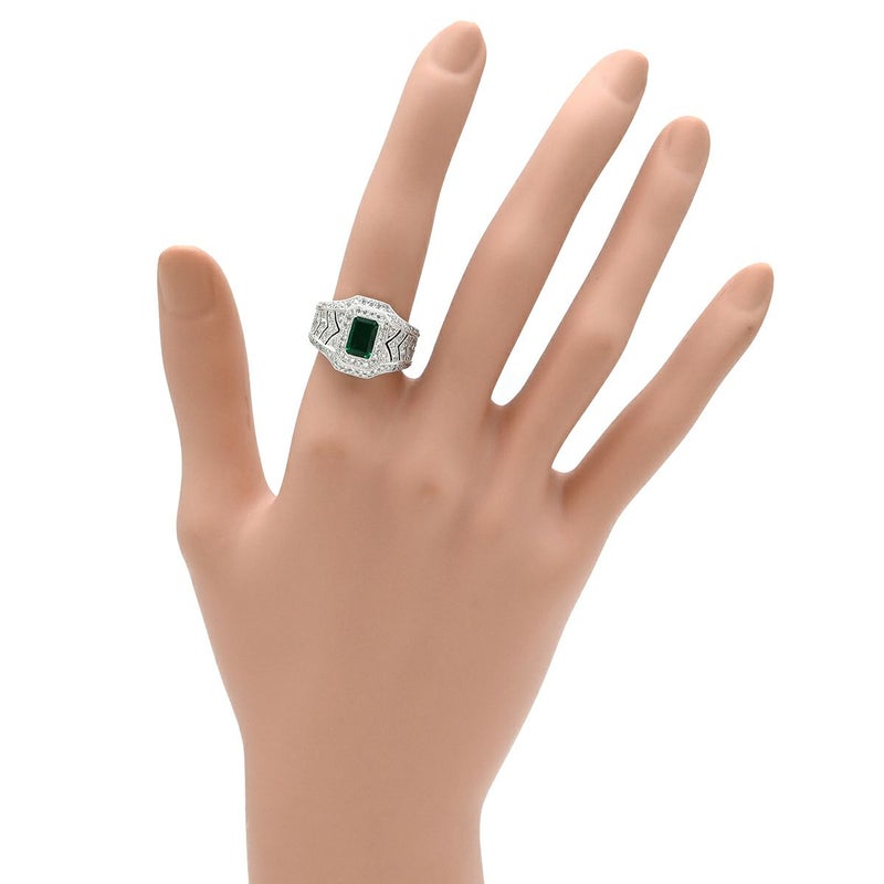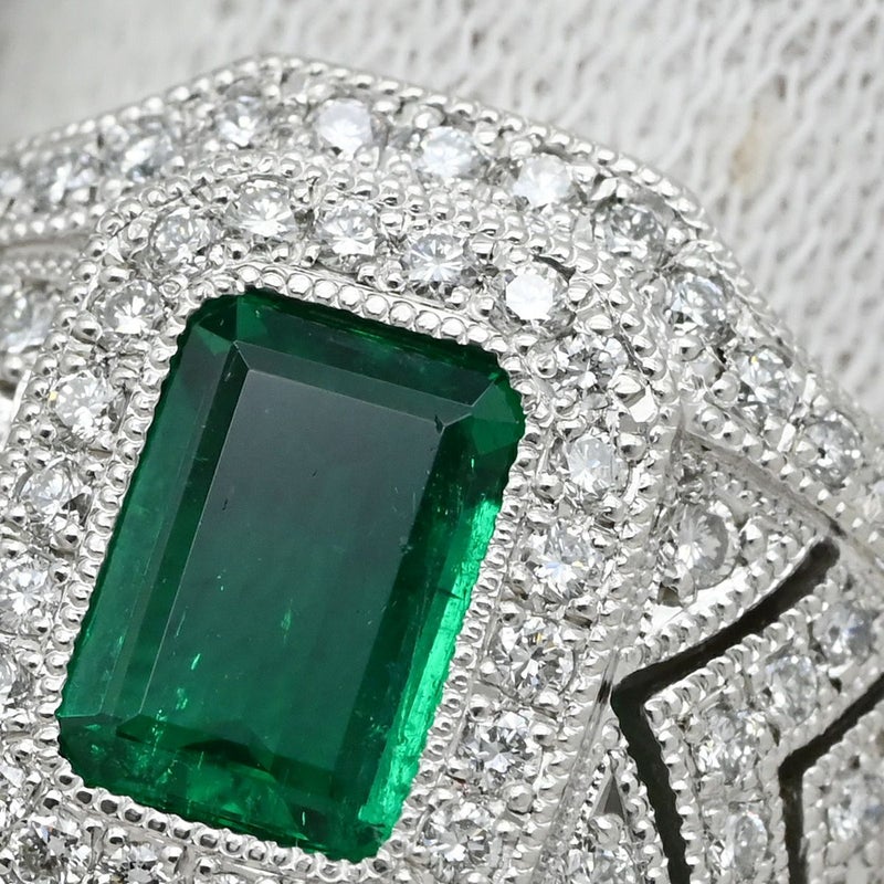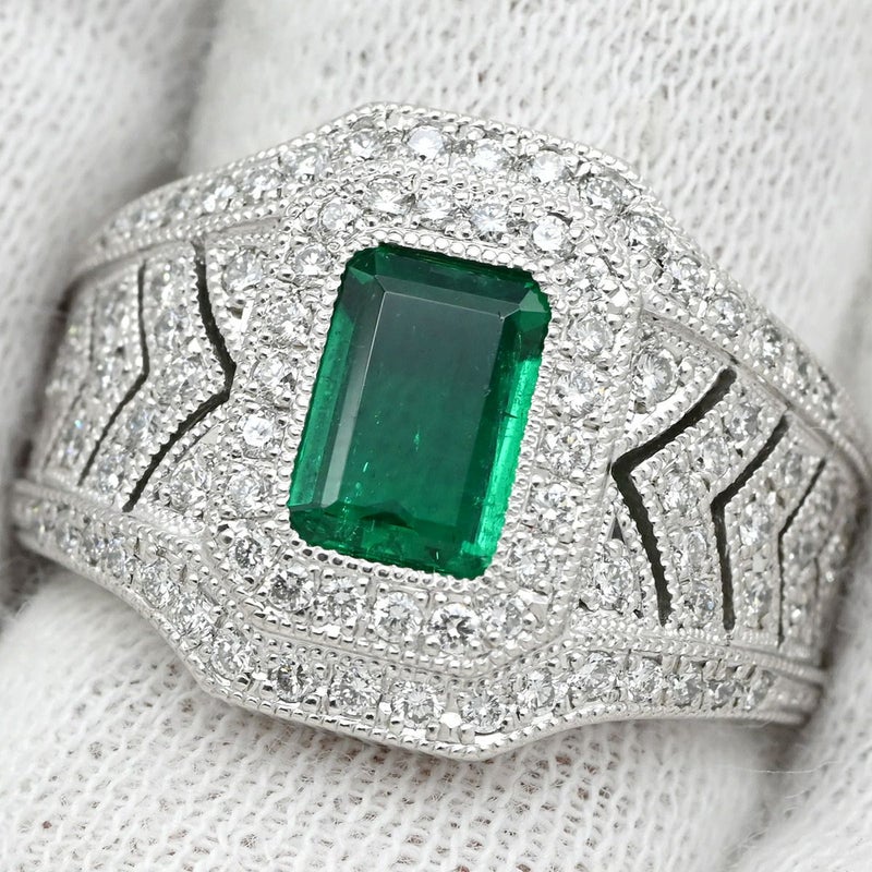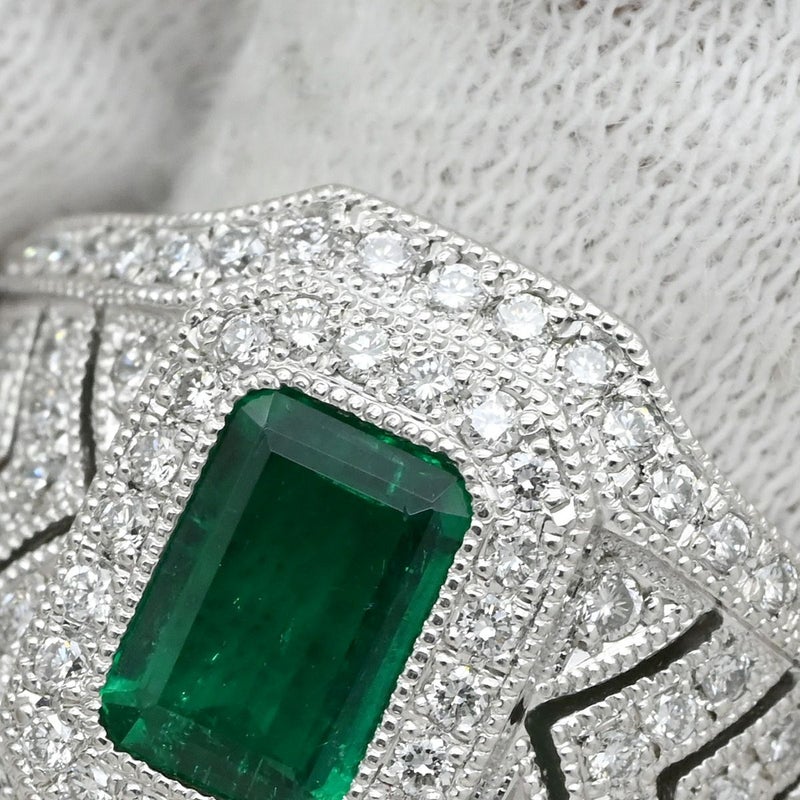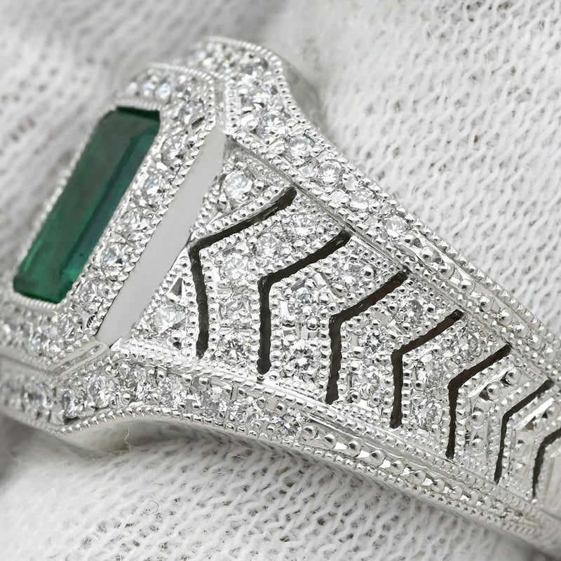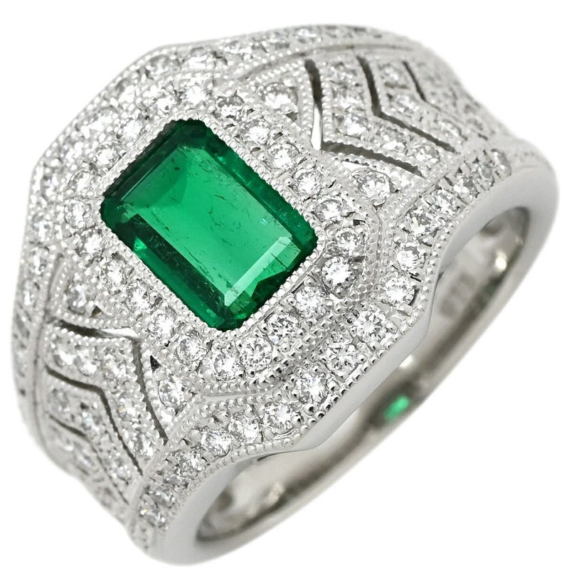 リング 指輪 エメラルド ダイヤ プラチナシルバー×グリーン グリーン 緑 カクテルリング パヴェダイヤ 10.5号 【中古】