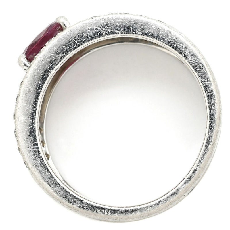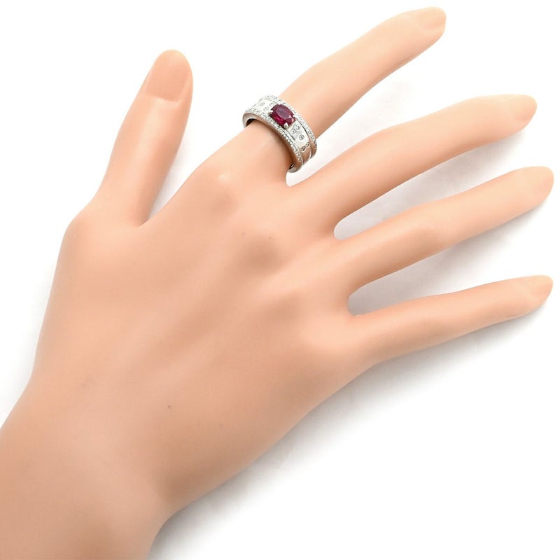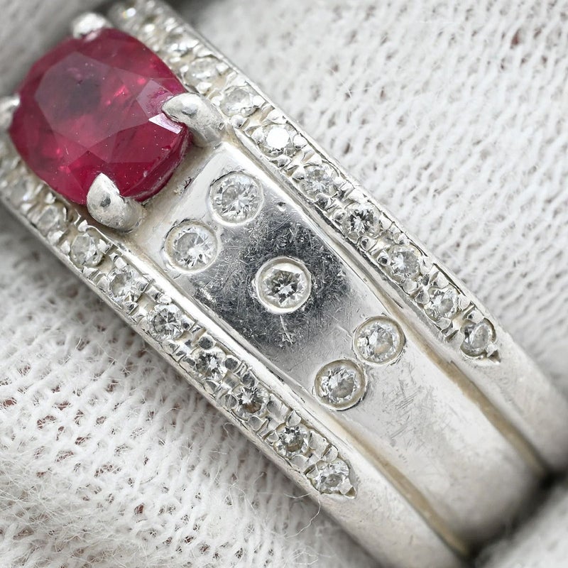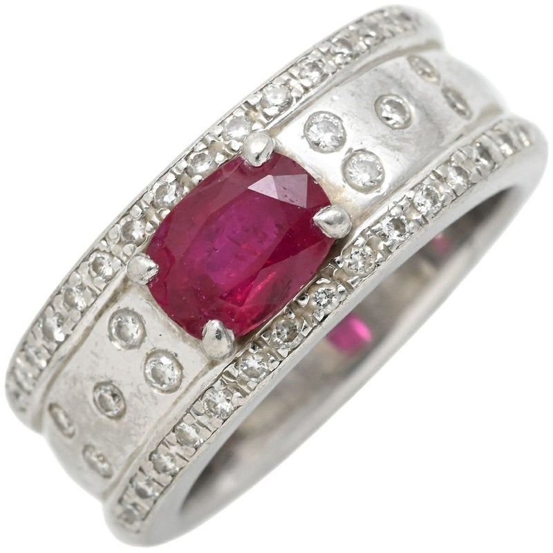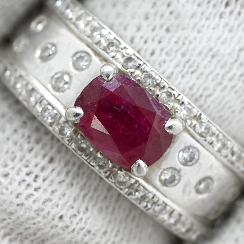 リング 指輪 ルビー ダイヤ リング レッド×プラチナシルバー 赤 プラチナム マット加工 つや消し 天然石 11号 【中古】