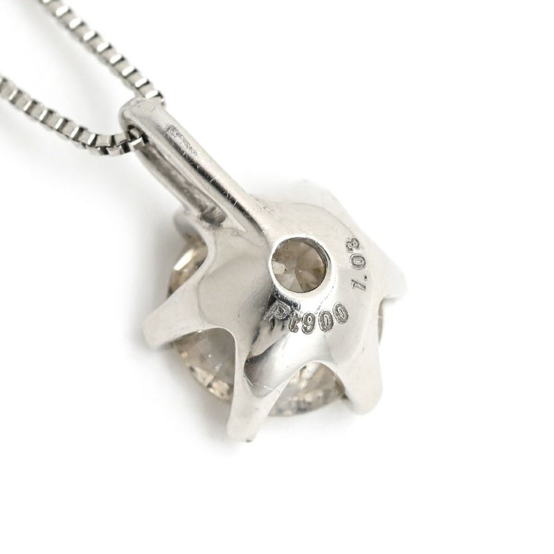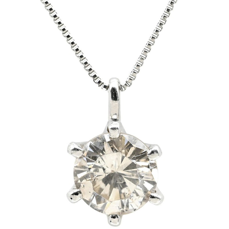 ネックレス ダイヤ ペンダント プラチナシルバー プラチナム 1P 1石 1粒 ソリティア 6本爪 ラウンド ベネチアンチェーン マチネサイズ 【中古】