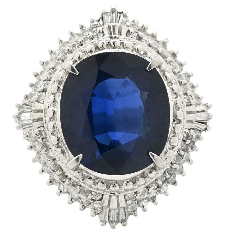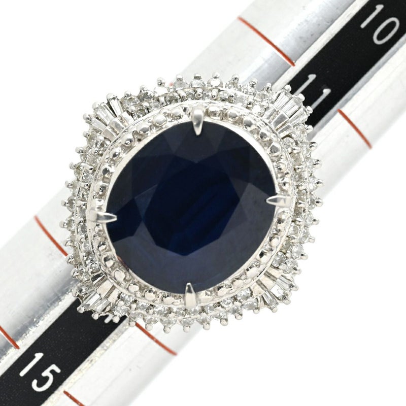 リング 指輪 ブルーサファイア 6.6ct ダイヤリング プラチナシルバー 青 ブルー 大粒 ラージ ブルー オーバルカット ひし形 Pt900 13号 【中古】