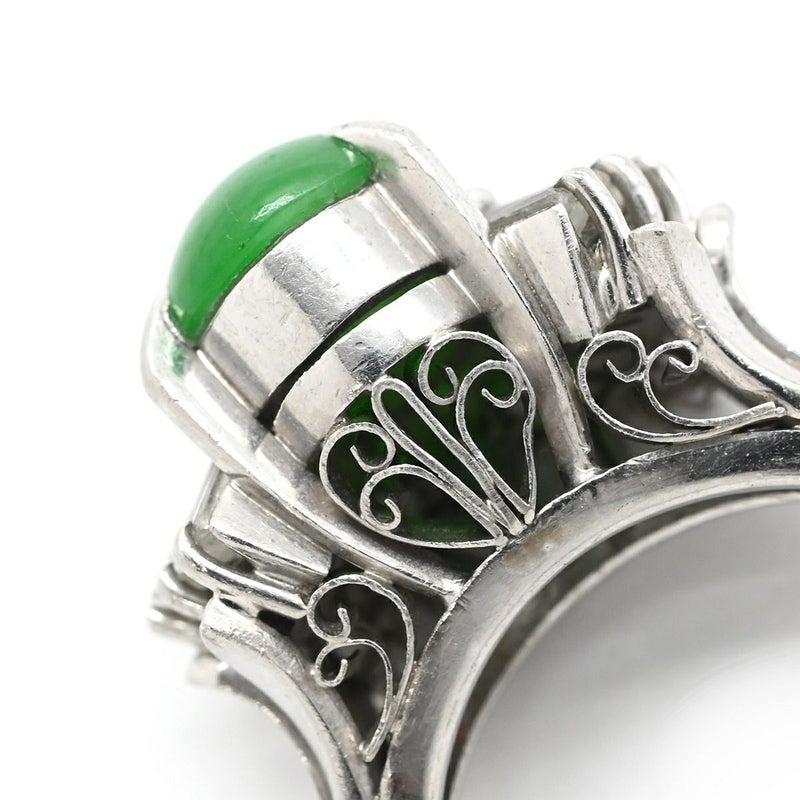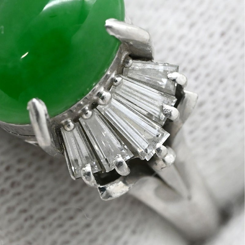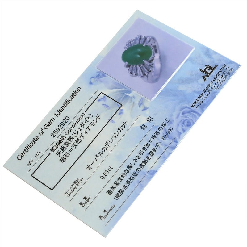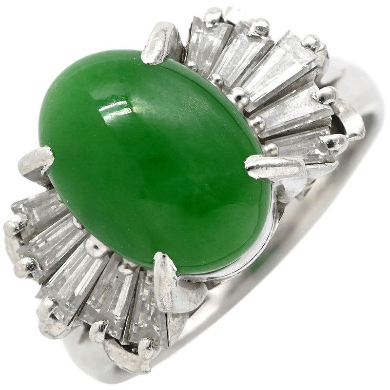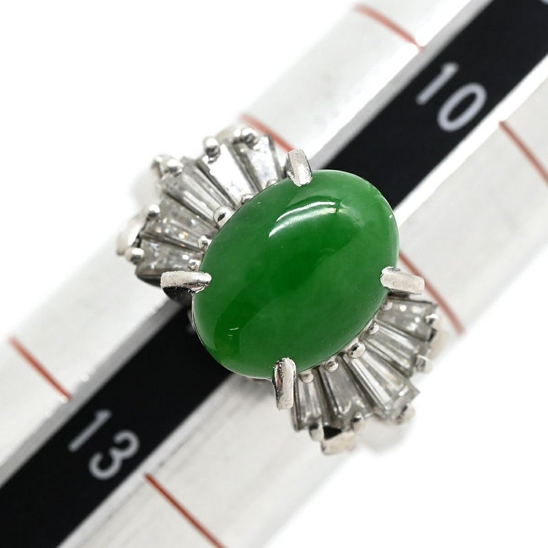 リング 指輪 ヒスイ ダイヤモンド プラチナシルバー 緑 グリーン 翡翠 ひすい ジェダイト Pm900 オーバルカット 11.5号 【中古】