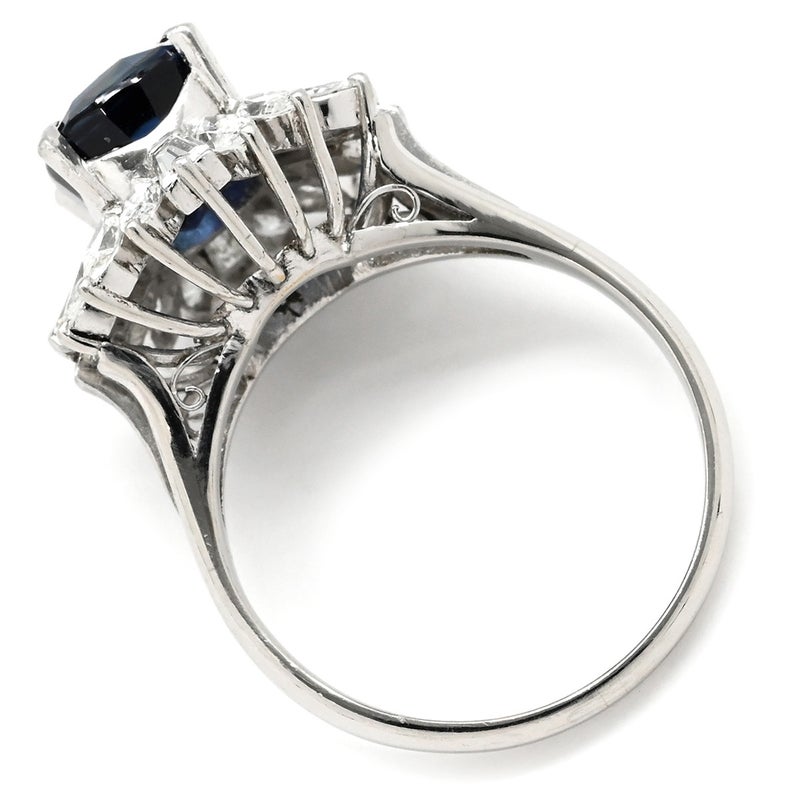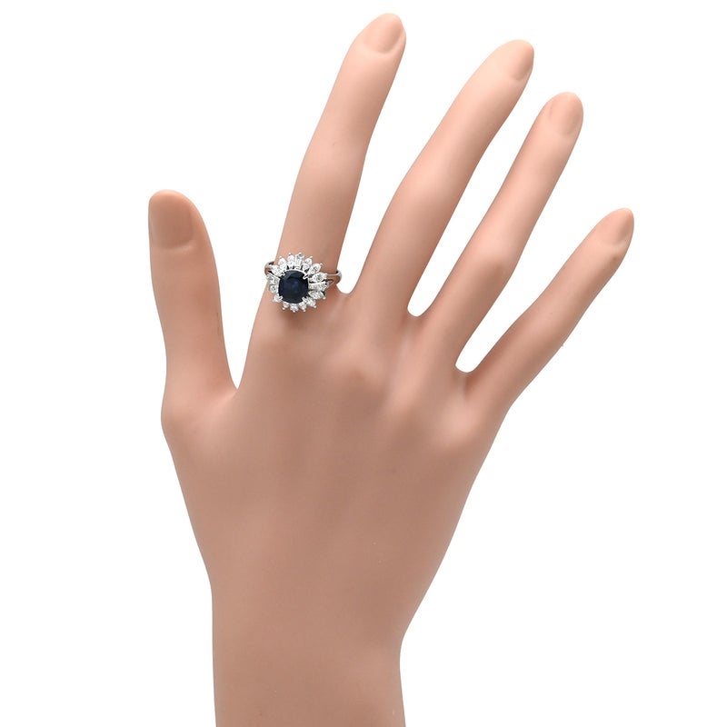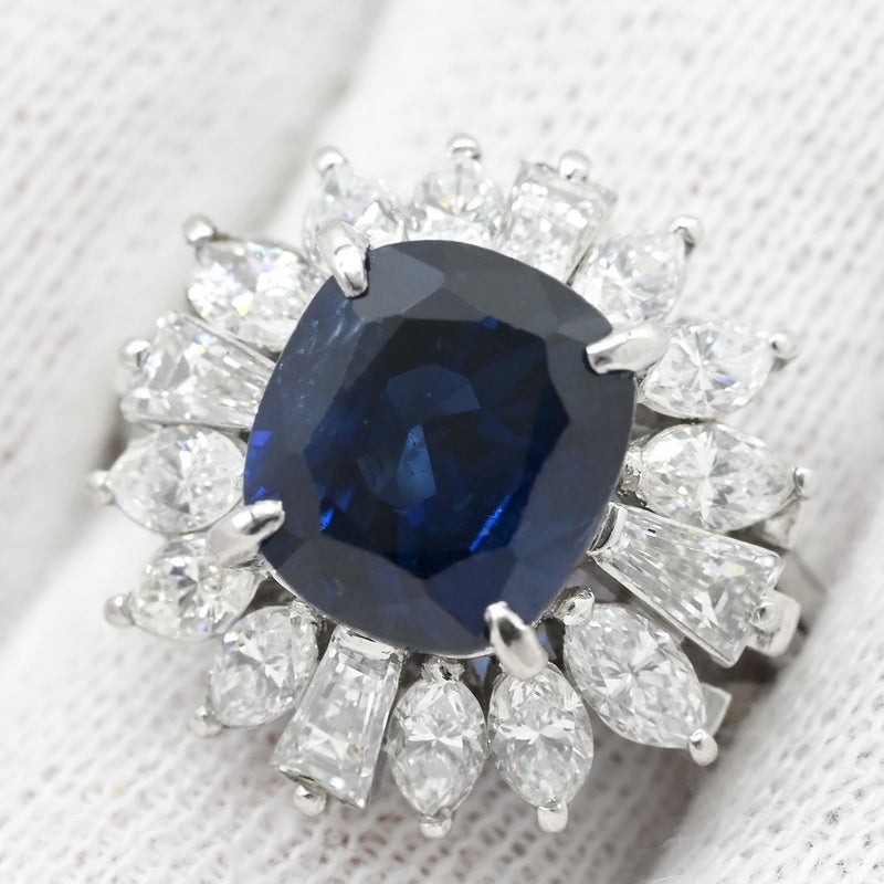 リング 指輪 ブルーサファイア ダイヤ ブルー×プラチナシルバー クッションカット Pt900 プラチナム 青 マーキス バゲットカット フラワーモチーフ 13号 【中古】