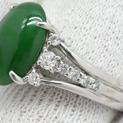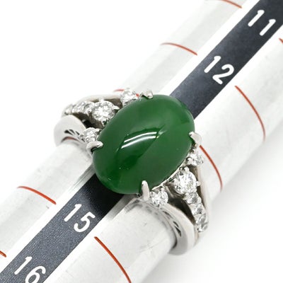 リング 指輪 ヒスイ 4.3ct ダイヤモンド プラチナシルバー 緑 グリーン 翡翠 ひすい ジェダイト プラチナ900 14号 【中古】