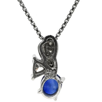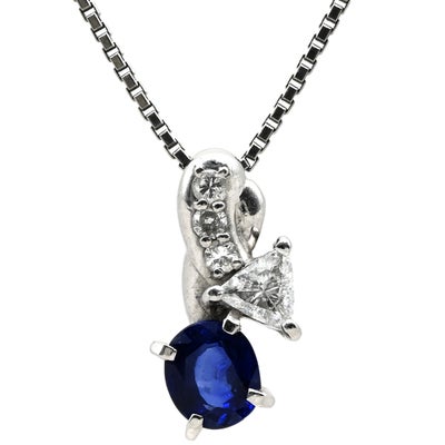 ネックレス ブルーサファイア 0.74ct ダイヤペンダント ブルー×プラチナシルバー 青 ブルー プラチナ オーバルミックスカット 【中古】
