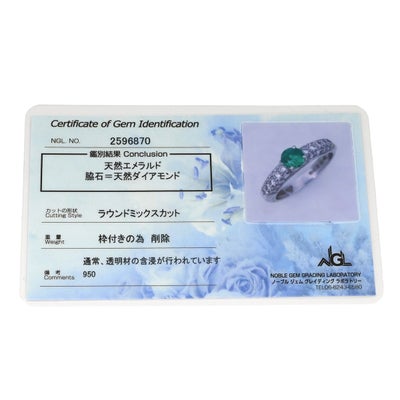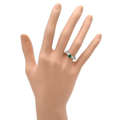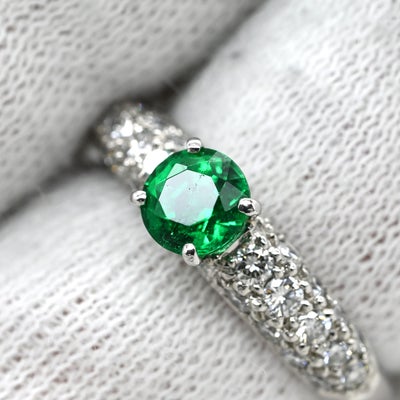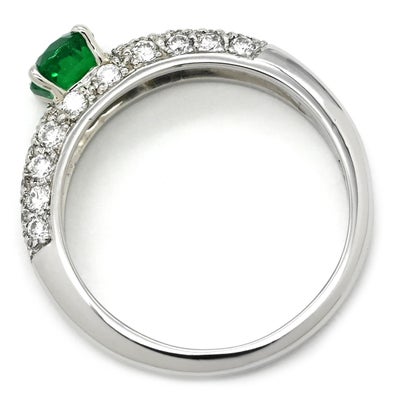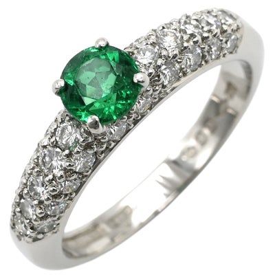 ガラード Garrard リング 指輪 エメラルド ダイヤモンドリング グリーン×プラチナシルバー 緑 プラチナ ラウンドミックスカット メレダイヤ 9.5号 【中古】
