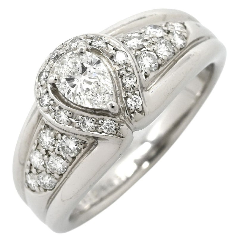 リング 指輪 SI2 ダイヤ 0.321ct プラチナシルバー Pt900 ペアシェイプ ヘイローデザイン パヴェ エンゲージ ブライダル 13号 【中古】