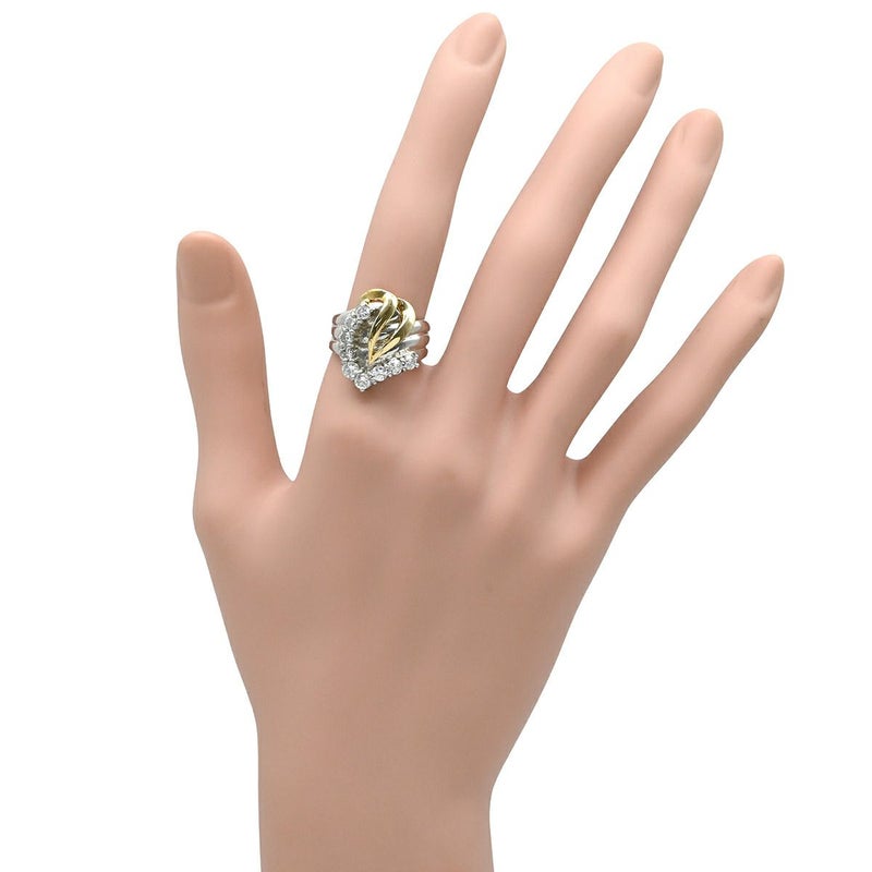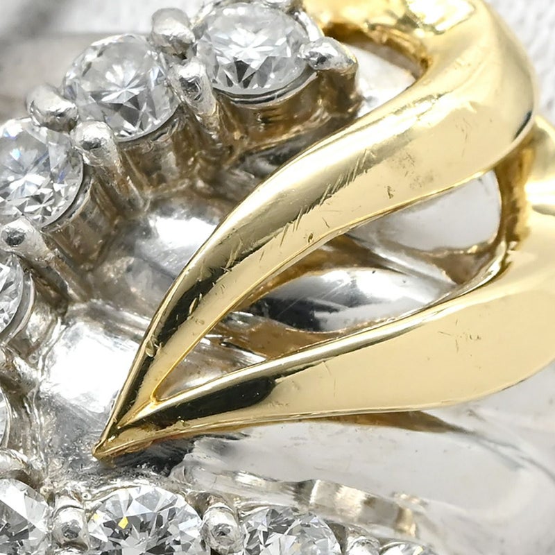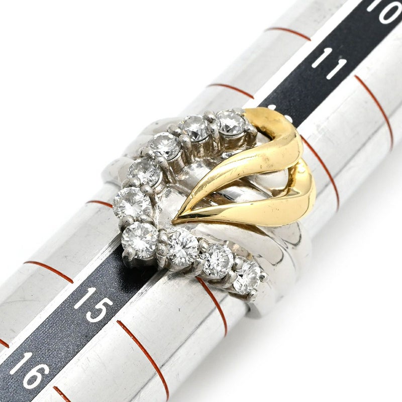 リング 指輪 ダイヤ 1.005ct プラチナシルバー Pt900×K18YG コンビ Au750 18K 18金 9P 9石 9粒 Vデザイン ウェーブ 13.5号 【中古】