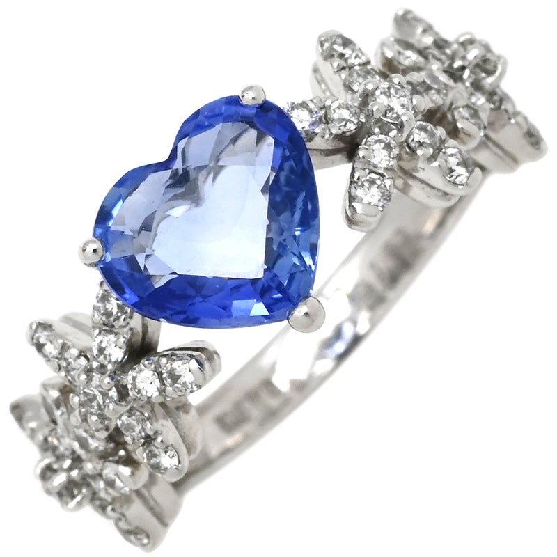 ポンテヴェキオ Ponte Vecchio リング 指輪 ホワイトゴールド Au750 18K 18金 パヴェ ダイヤ サファイア ハート フラワーモチーフ 10号 【箱】 【中古】