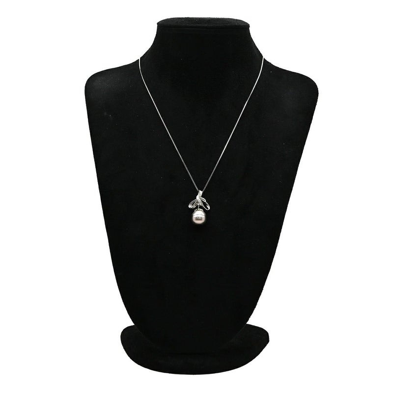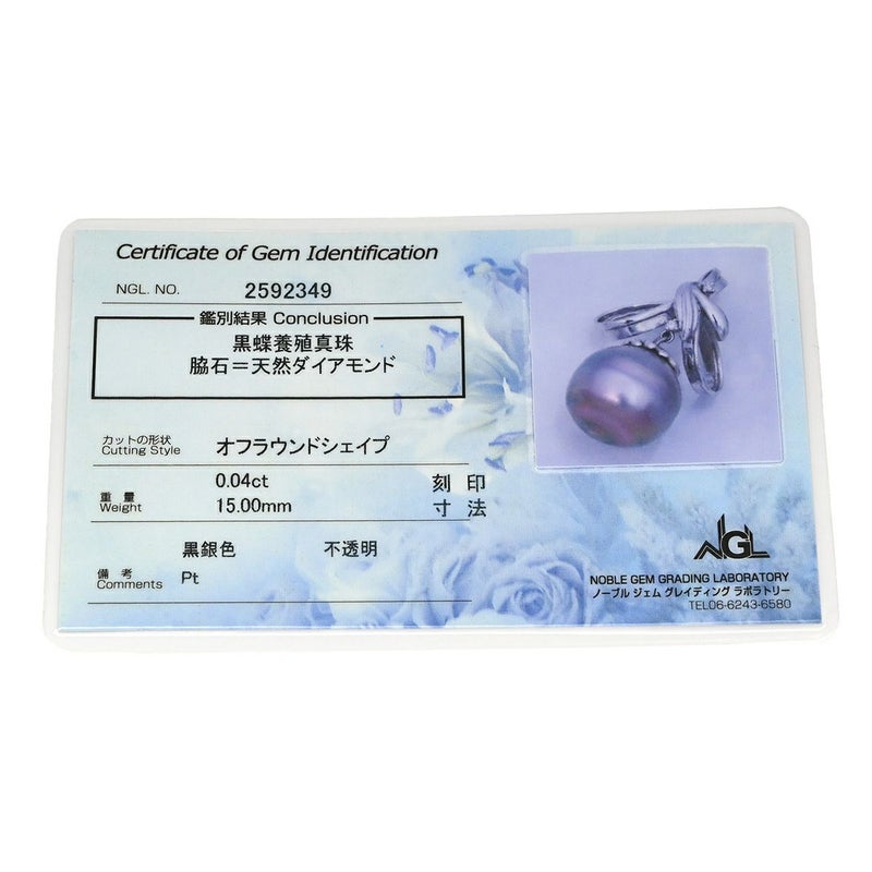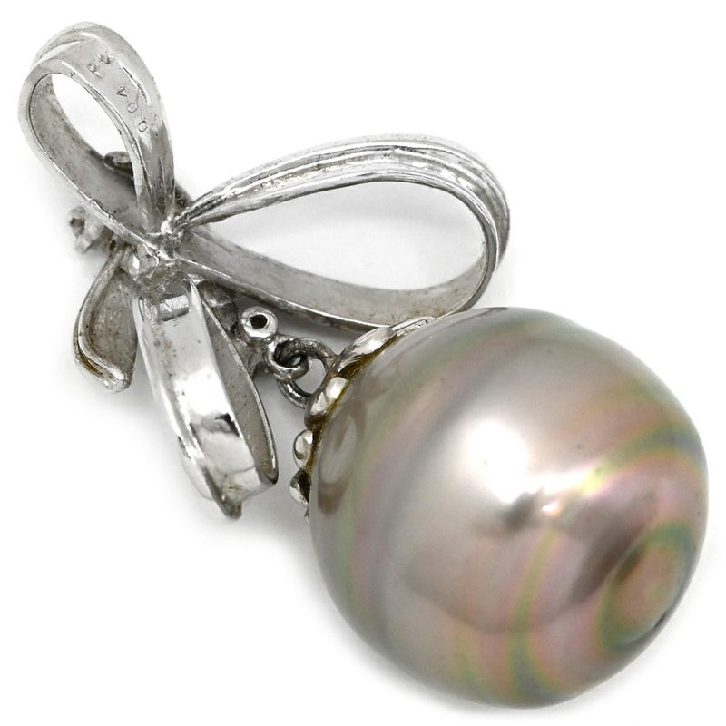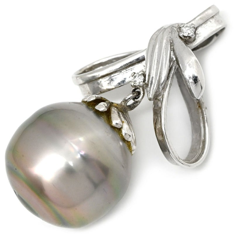 ペンダントトップ 黒蝶パール 15mm ダイヤモンド ホワイトゴールド 真珠 シルバー プラチナ ネックレストップ オフラウンドシェイプ リボン 【中古】