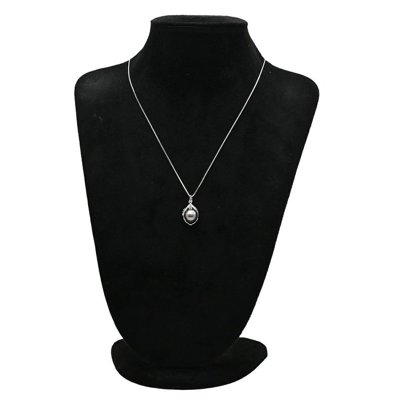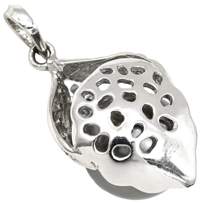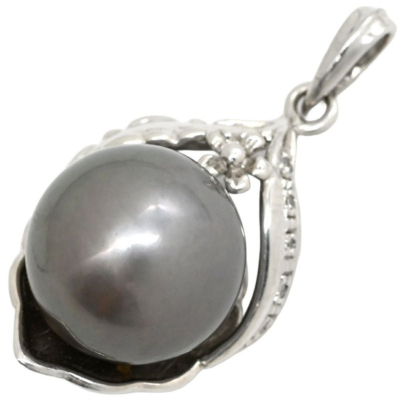 ペンダントトップ 黒蝶パール 12mm ダイヤモンド ホワイトゴールド 真珠 黒 シルバー 750 18金 ネックレストップ チャーム ラウンドシェイプ 【中古】