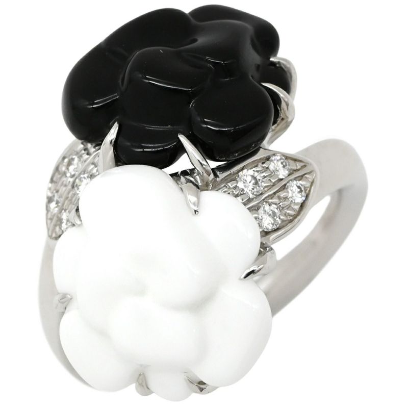 シャネル CHANEL リング 指輪 カメリア ブラック×ホワイト×ホワイトゴールド #48 Au750 ダイヤ オニキス ホワイトアゲート メノウ 花 7.5号 J2938 【箱】 【中古】