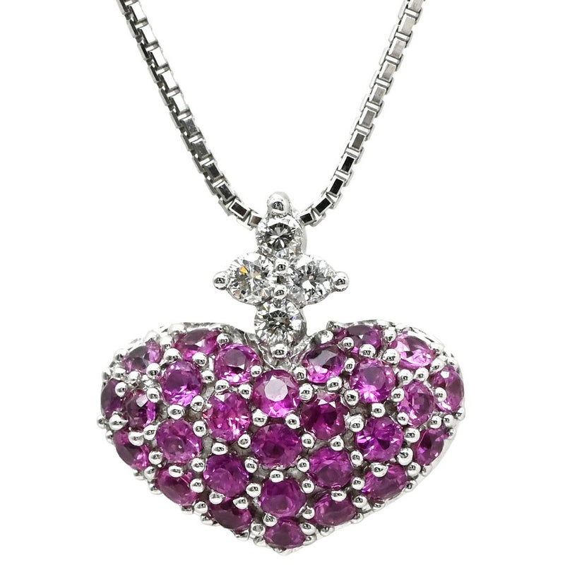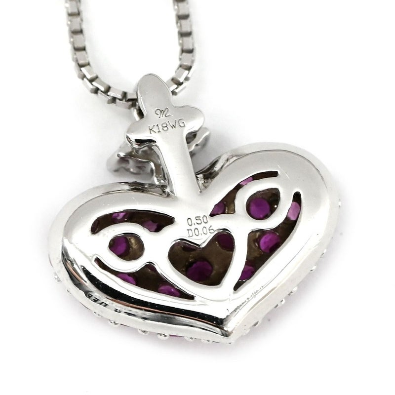ネックレス ルビー ダイヤペンダント ホワイトゴールド ダイヤモンド 赤 ハートモチーフ ラウンドミックスカット 【中古】