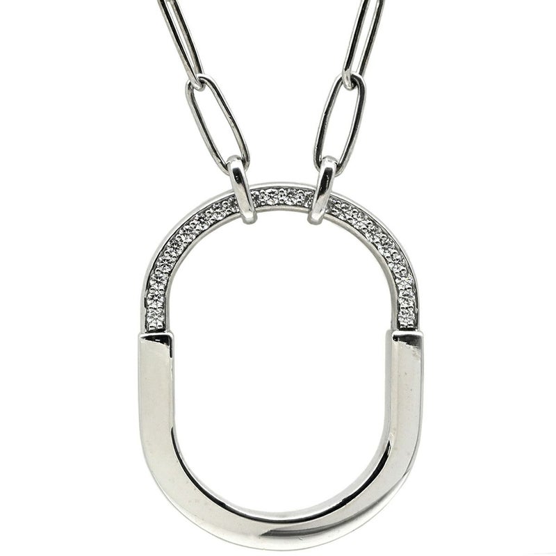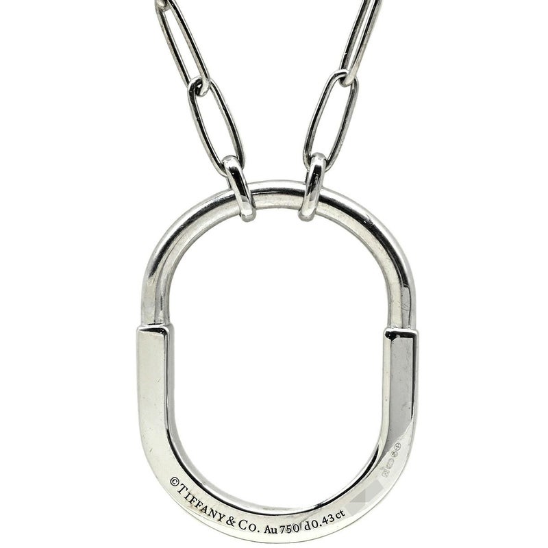 ティファニー Tiffany & Co ネックレス ロック ペンダント ホワイトゴールド T&Co. Au750 18K ダイヤ オーバル型 チェーン 【中古】