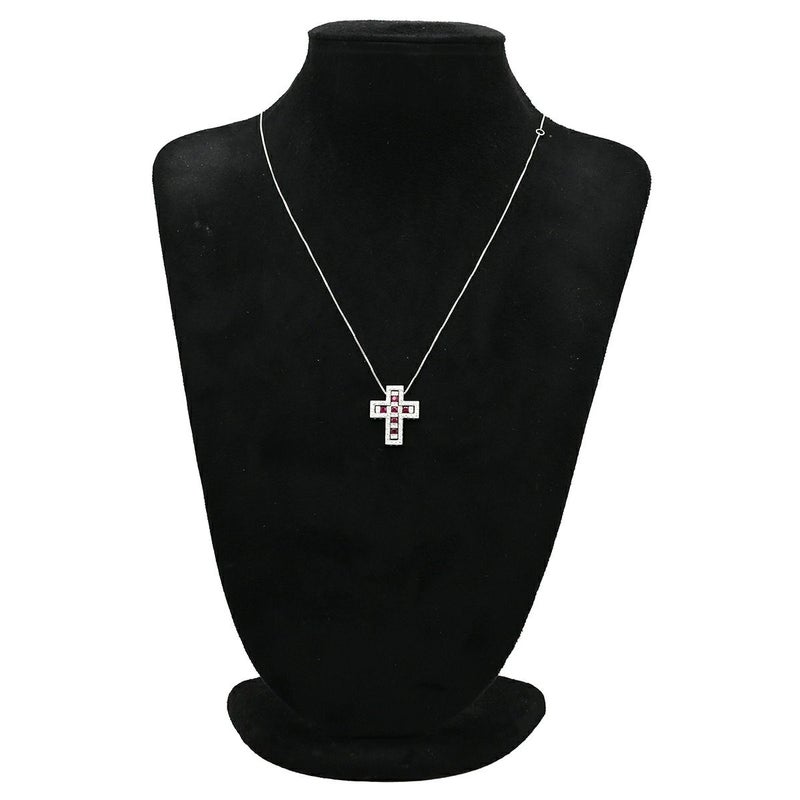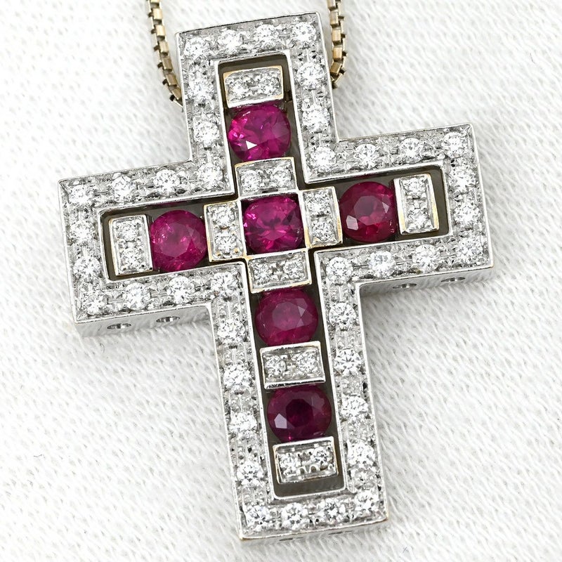 ダミアーニ DAMIANI ネックレス ベルエポック ホワイトゴールド ペンダント 750 18金 クロス 十字架 ダイヤ ルビー 【中古】