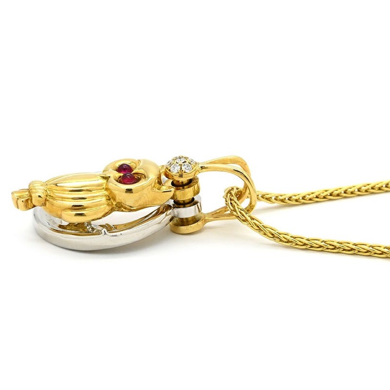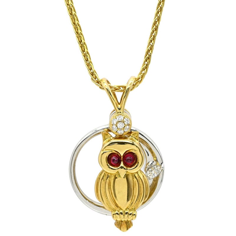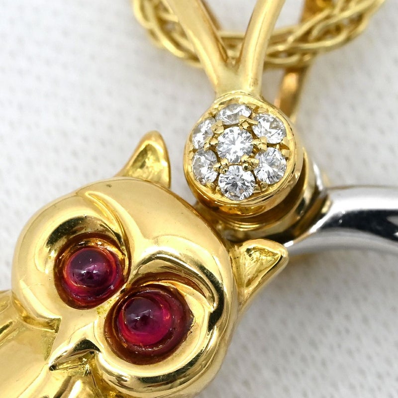 ウォルサム WALTHAM ネックレス フクロウモチーフ イエローゴールド×ホワイトゴールド 18K 18金 ダイヤ ルビー スイング ムービング チェーン社外品 【中古】