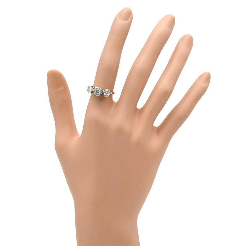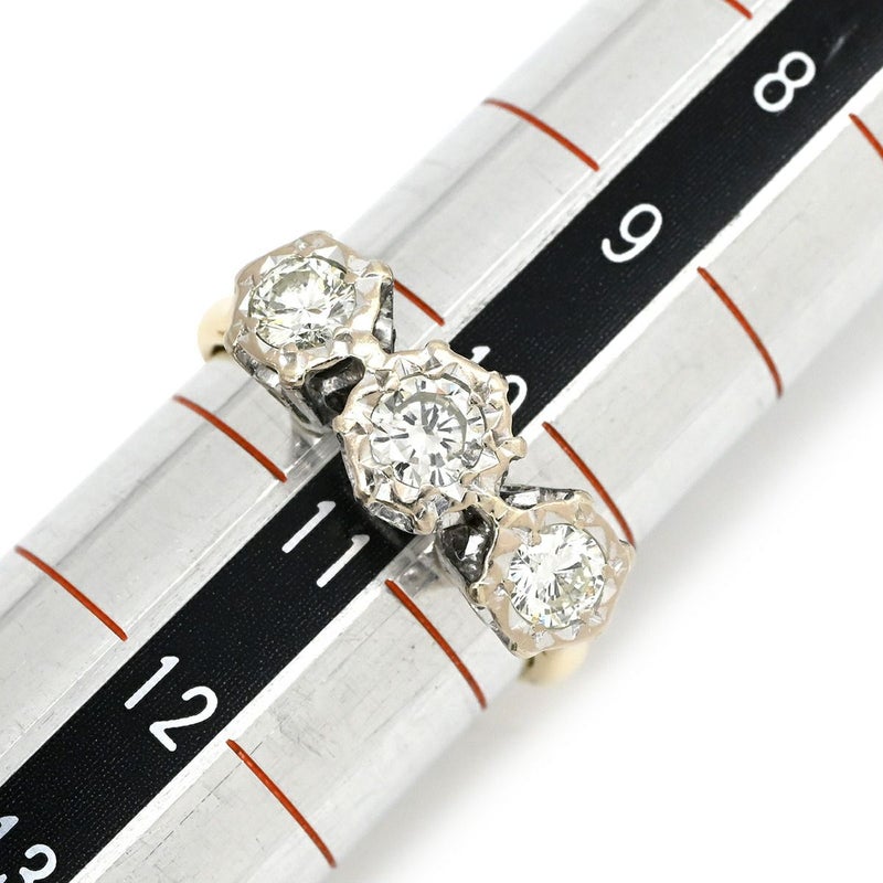 リング 指輪 ダイヤモンド 0.69ct イエローゴールドXホワイトゴールド 3P 3粒 3石 18K 750 YG WG コンビ ブリリアントカット 一文字 10.5号 【中古】