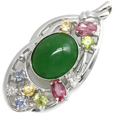 K18WG / ヒスイ / ピンクトルマリン / サファイア / ペリドット / ダイヤモンド