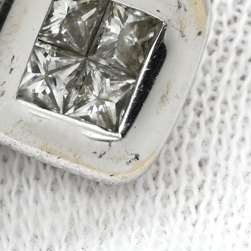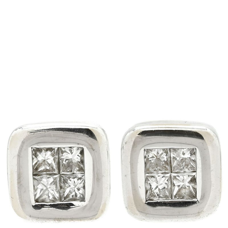ピアス ダイヤスクエアシェイプ スタッドピアス ホワイトゴールド K18WG Au750 プリンセスカット 両耳用 【中古】