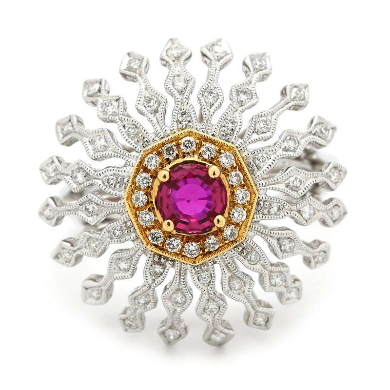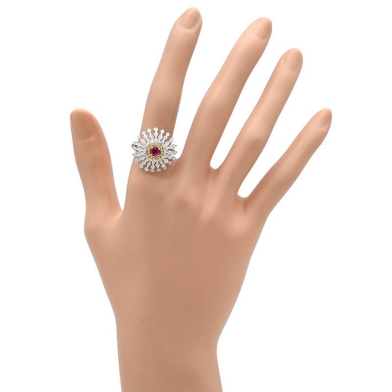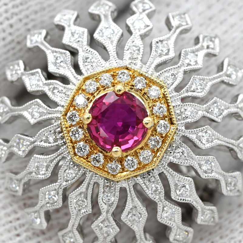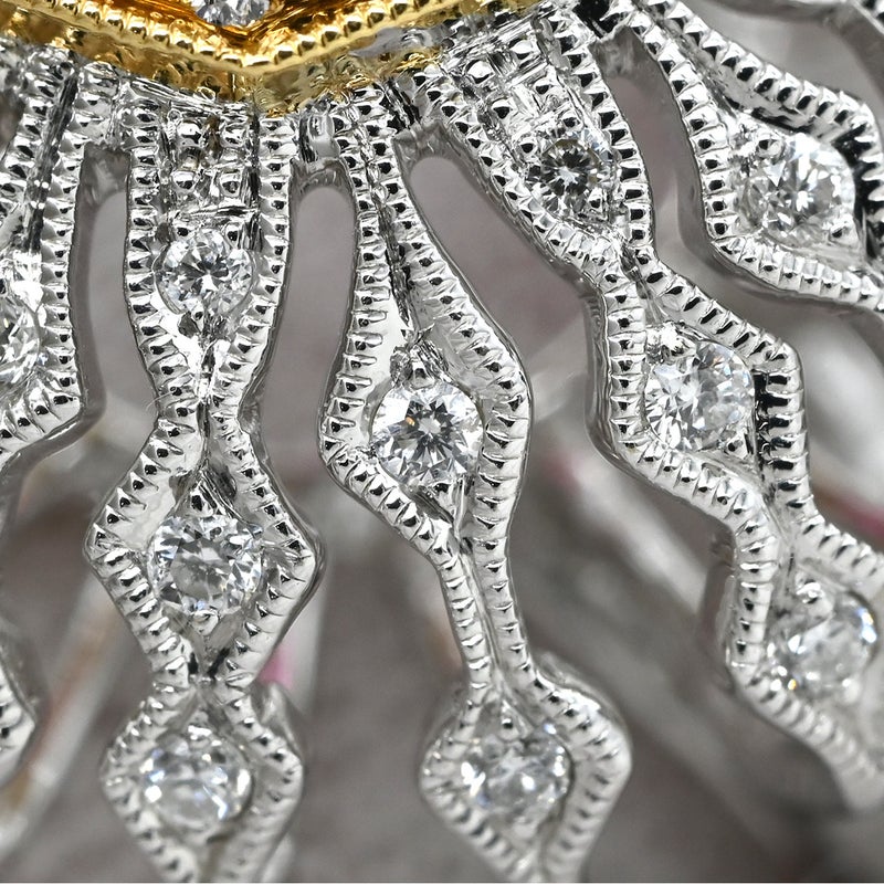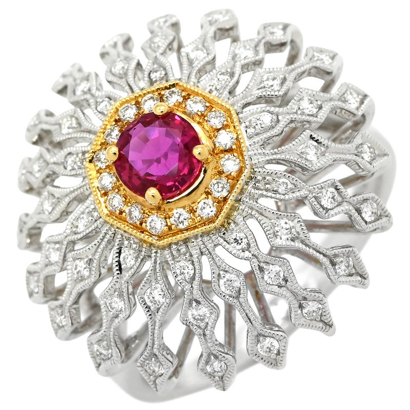 カール・ブラックバーン CARL BLACKBURN リング 指輪 ダイヤ ルビー ホワイトゴールド×レッド ホワイトゴールド Au750 18K ドーム型 フラワーモチーフ 透かし彫り 13号 【箱】 【中古】