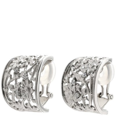 水野薫子 Kaoluco Mizuno イヤリング 薫花 フラワー 透かし彫り ダイヤ ホワイトゴールド K18WG Au750 18K 18金 フィグーリ 花モチーフ 3P 3石 3粒 【中古】