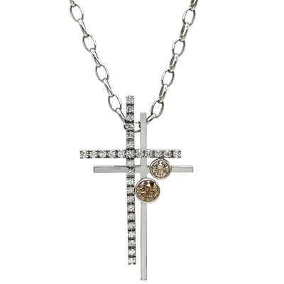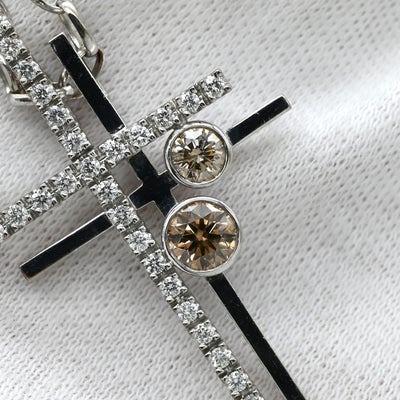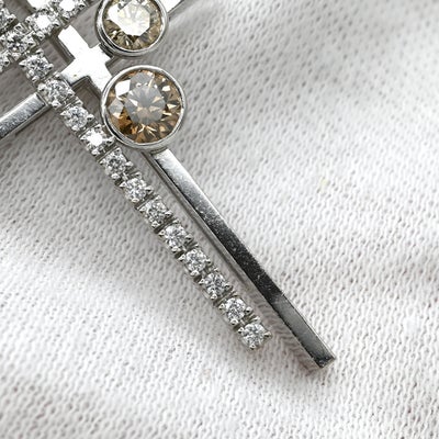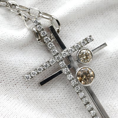 カシケイ KASHIKEY ネックレス ダブルクロス ブラウンダイヤ ペンダント ホワイトゴールド Kashikey 18K 750 WG 十字架 クロス 【中古】