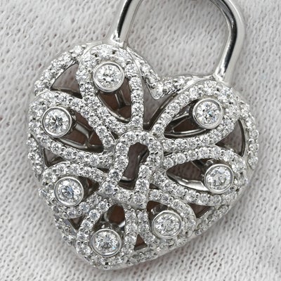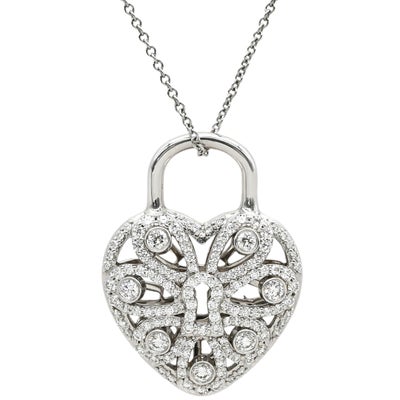 ティファニー Tiffany & Co ネックレス フィリグリー ハート ダイヤペンダント ホワイトゴールド K18 WG 南京錠 パドロック 鍵 パヴェダイヤ 【中古】