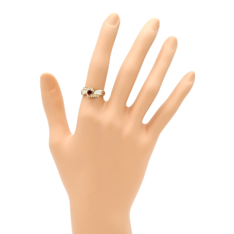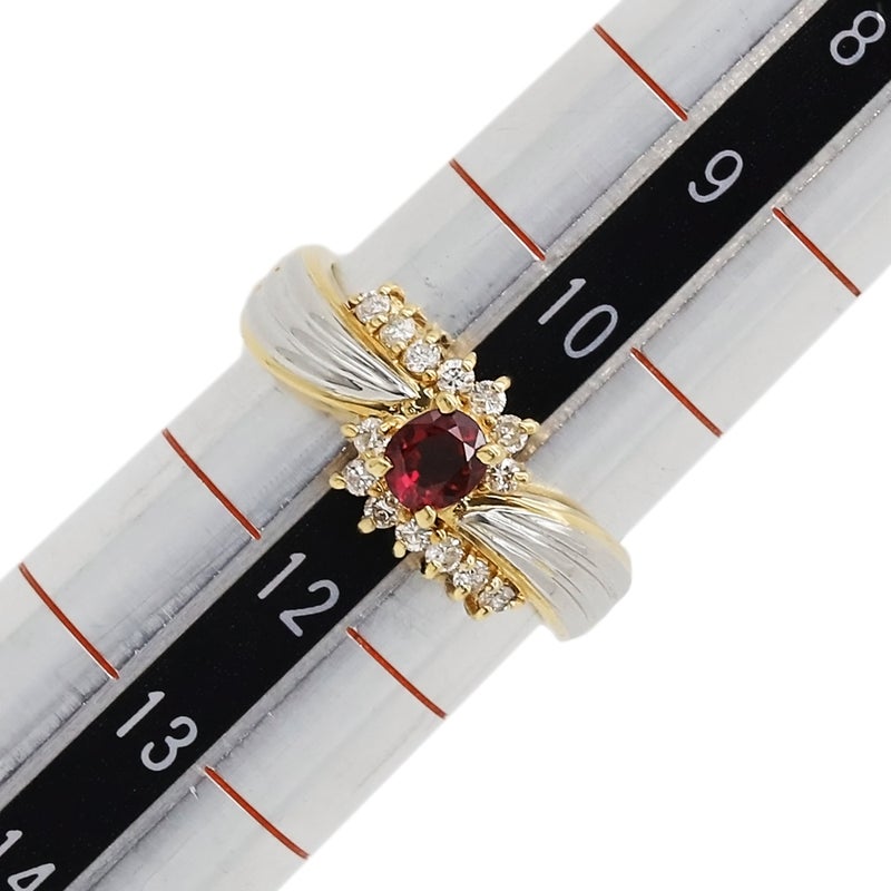 リング 指輪 ルビー ダイヤリング イエローゴールド×プラチナシルバー Pt900 イエローゴールド プラチナ コンビ レッド 赤 11号 【中古】
