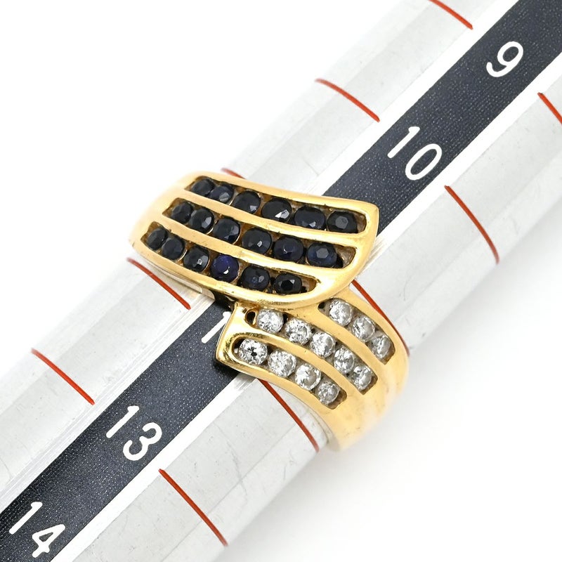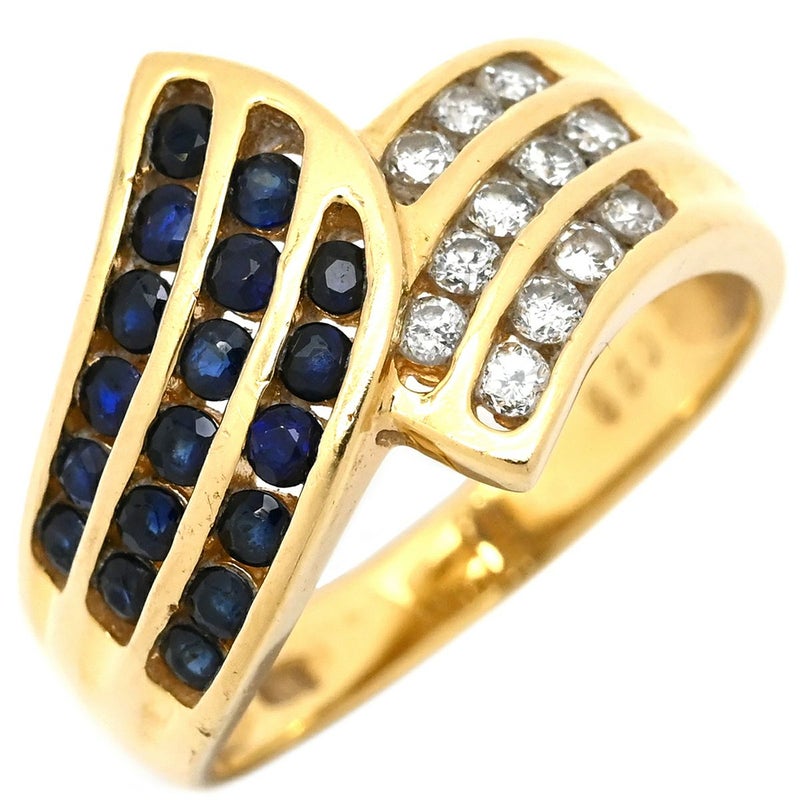 リング 指輪 ブルーサファイア ダイヤリング イエローゴールド 18K 750 YG 11.5号 【中古】
