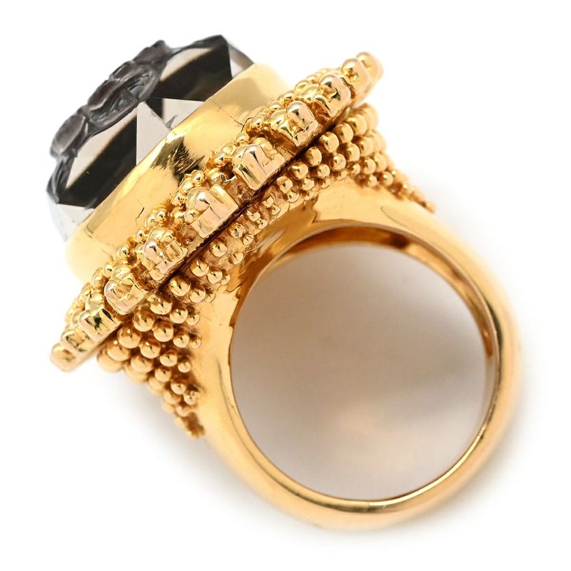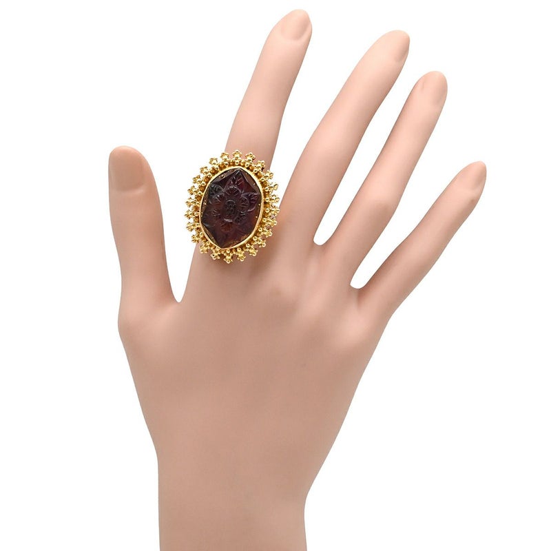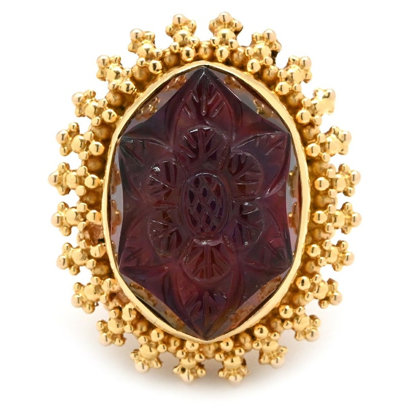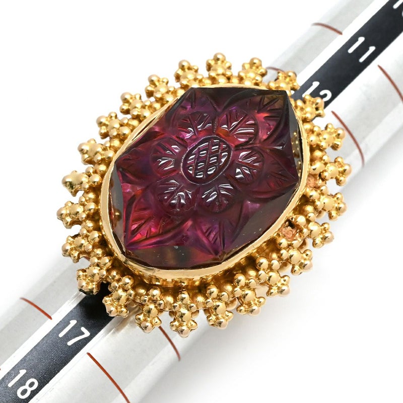 スティーブン デュエック STEPHEN DWECK リング 指輪 ヴィンテージリング イエローゴールド×レッド フラワー 花モチーフ彫刻 カクテルリング 14.5号 【中古】