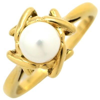 ティファニー Tiffany & Co リング 指輪 XO リング イエローゴールド T&Co. Au750 18K 18金 1P 1石 1粒 パール 真珠 8.5号 【中古】