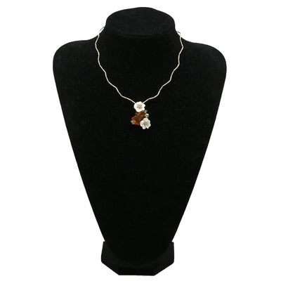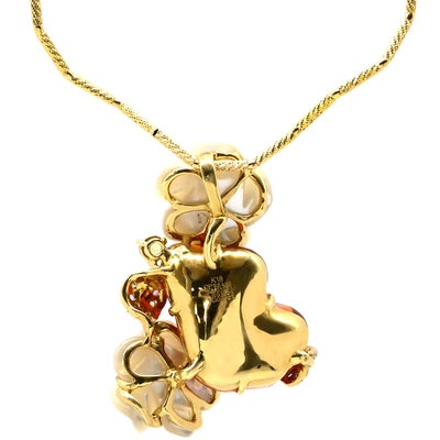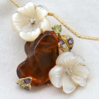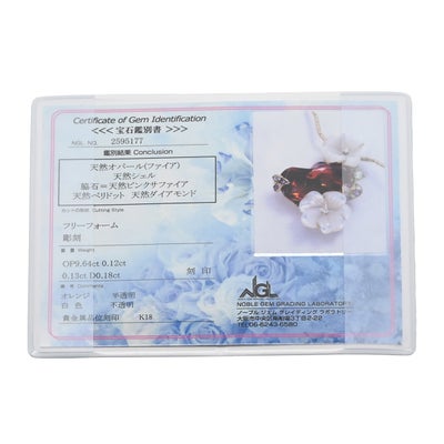 ネックレス オパール ペンダント パールホワイト×オレンジ×イエローゴールド ダイヤ シェル マルチストーン 花 フワラー フィーレチェーン 【中古】