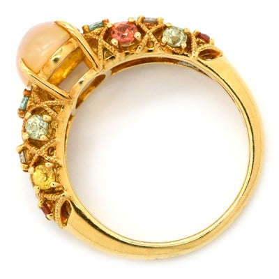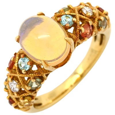 リング 指輪 オパール 1.0ct ダイヤモンド マルチカラーXイエローゴールド 遊色 オーバルカボションカット トルマリン サファイア 18K 750 YG 10.5号 【中古】