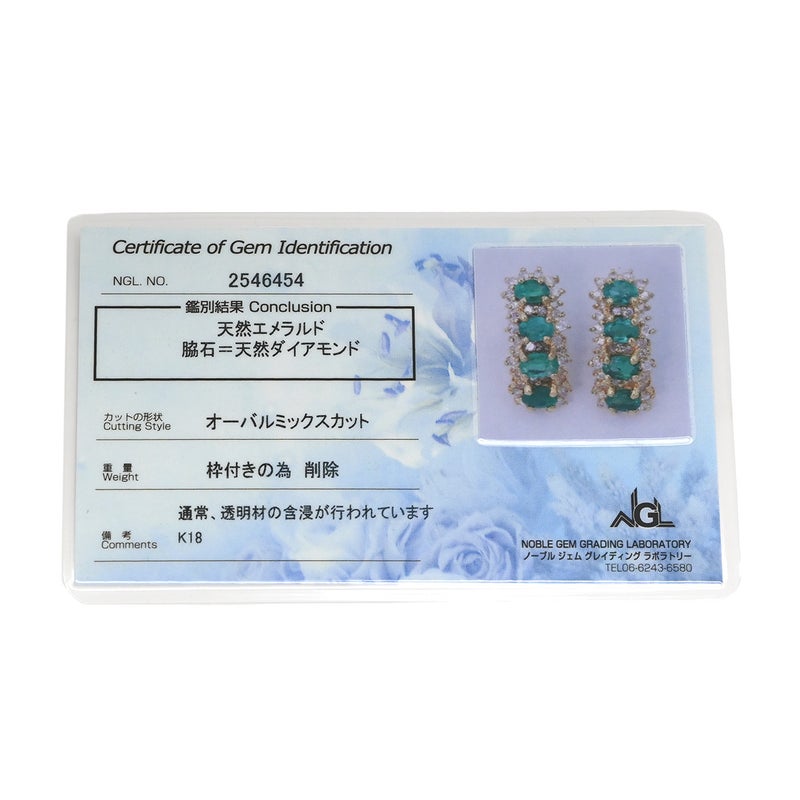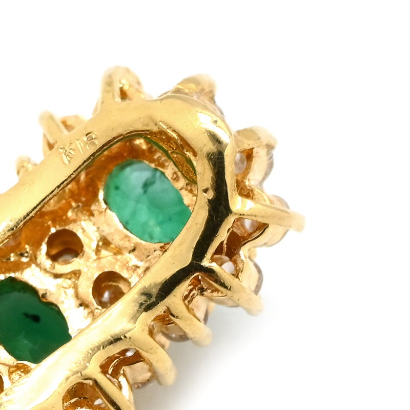 ピアス エメラルド4石 ダイヤ イエローゴールド×グリーン 緑 Au750 K18 オーバル 縦並び アンティーク調 【中古】