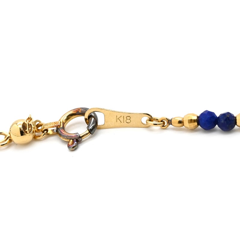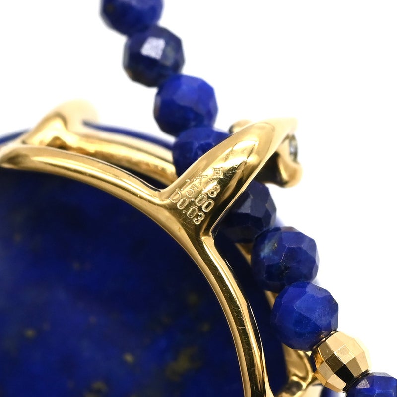 ネックレス ラピスラズリ センター 大玉 イエローゴールド×ブルー Au750 18K 18金 ダイヤ 1粒 ラピスラズリ ビーズ ネックレス 【中古】