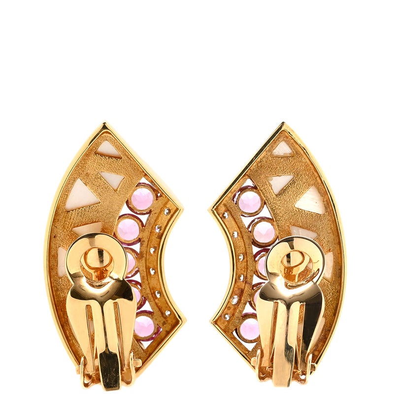 タサキ TASAKI イヤリング ホワイト×ピンク×イエローゴールド 750YG Au750 ダイヤ シェル トルマリン バイカラー クレセント 扇形 【中古】