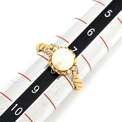 ニナリッチ NINA RICCI リング 指輪 パールツイストリング パールホワイト×イエローゴールド NINA RICCI アコヤ 真珠 メレダイヤ Au750 K18 YG 8号 【中古】