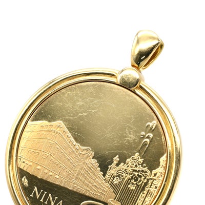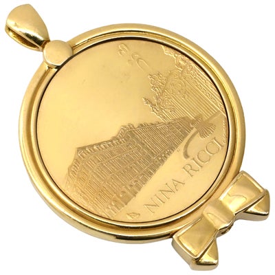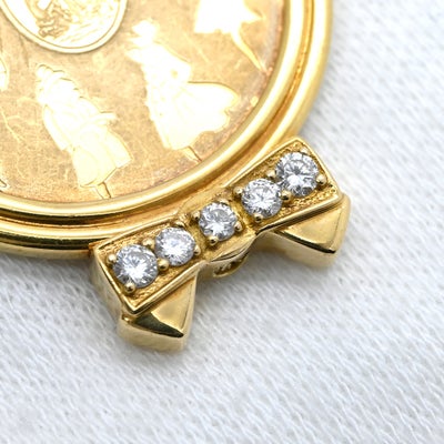 ニナリッチ NINA RICCI ペンダントトップ ダイヤ コインネックレス イエローゴールド NINA RICCI Au750 18K 18金 メダル コイン型 リボン 【中古】