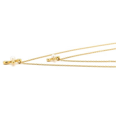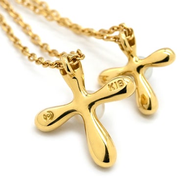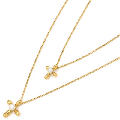 タサキ TASAKI ネックレス 2連クロス パール ペンダント パールホワイト×イエローゴールド Au750 18K 18金 YG アコヤ 真珠2P 【中古】