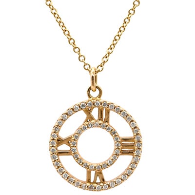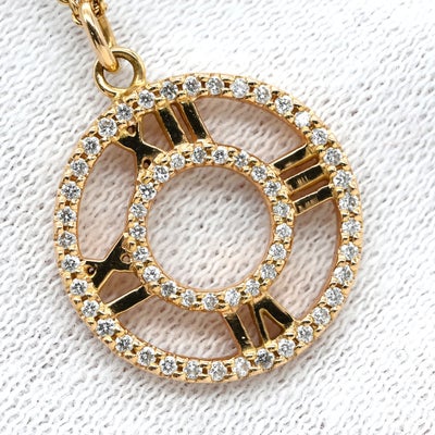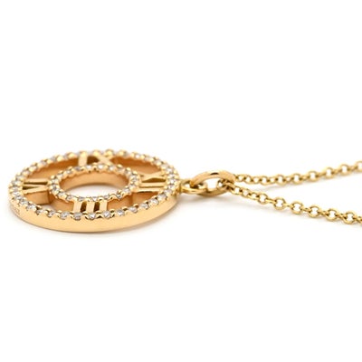 ティファニー Tiffany & Co ネックレス アトラス オープン メダリオン ペンダント イエローゴールド T&Co. K18YG Au750 18K 18金 ダイヤ 【中古】