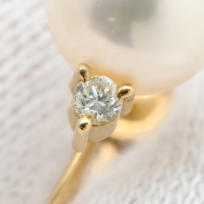 タサキ TASAKI イヤリング 7mmパール ダイヤ1粒 イエローゴールド 750YG Au750 ダイヤ 0.03ct パール スクリュー 【箱】 【中古】