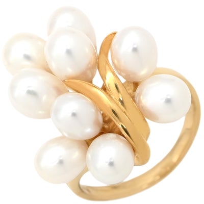 タサキ TASAKI リング 指輪 パール リング パールホワイト×イエローゴールド K18YG クラスター真珠 オーバル型パール 10.5号 【中古】