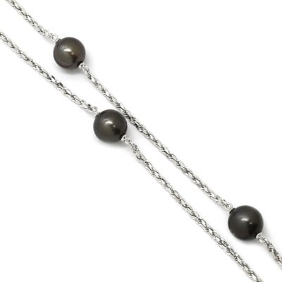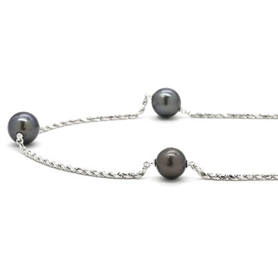 ネックレス ステーションネックレス パールブラック 黒 黒蝶パール 真珠 750 ホワイトゴールド ブラック パール 【中古】