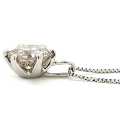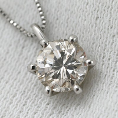 ネックレス ダイヤ ペンダント プラチナシルバー プラチナム 1P 1石 1粒 ソリティア 6本爪 ラウンド ベネチアンチェーン マチネサイズ 【中古】